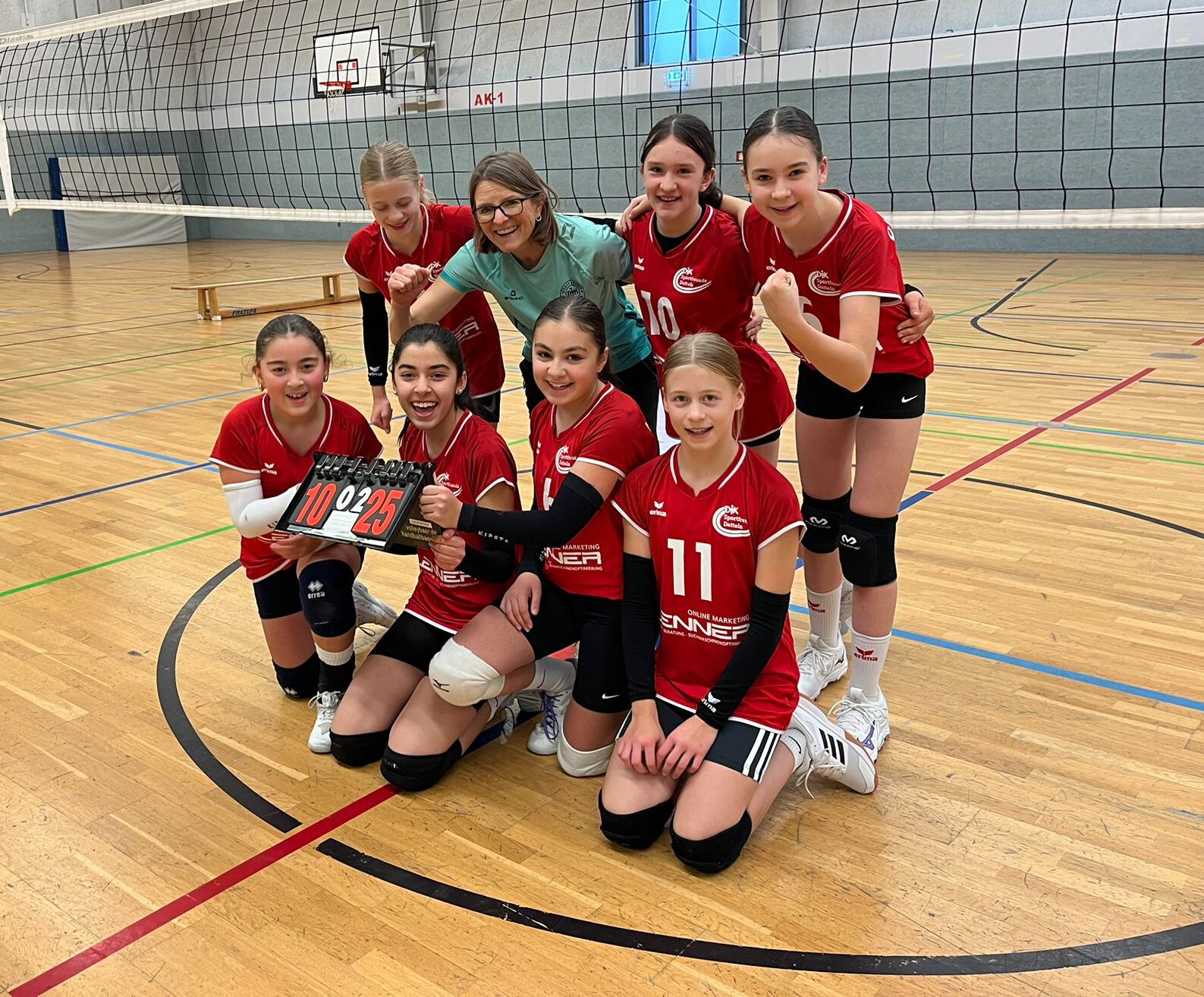Es war – mit einer Ausnahme – das erste Ligaspiel für die jungen Nachwuchsspielerinnen. Die Teams sind in etwa gleich stark, entsprechend offen waren auch die Sätze. Am Ende setzte sich die Zweite knapp gegen die Dritte durch. Aber das Ergebnis ist nachrangig, wichtiger sind die ersten Erfahrungen – und der Spaß am Spiel!